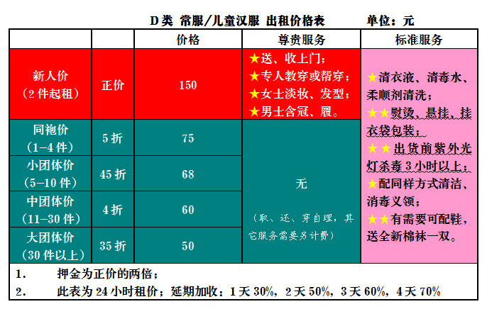 4.所有费用均在客户归还汉服当日结清。