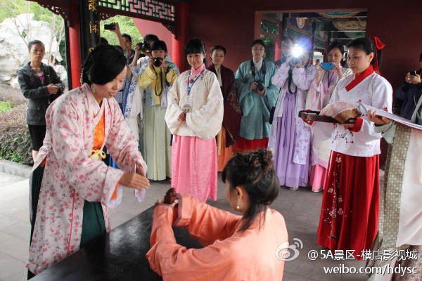 2013年11月9日,首届中华礼乐大会在浙江横店举行。在11月10日华夏园举行的华夏礼仪大展上,展示了传统女子成人礼—笄礼。