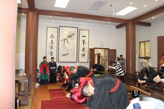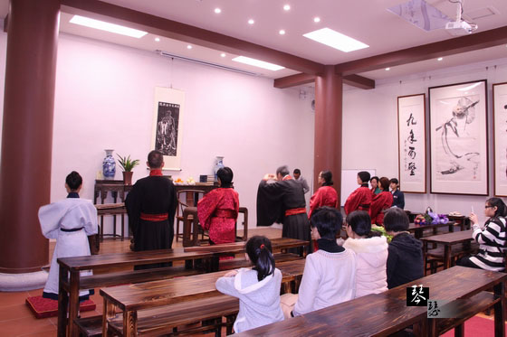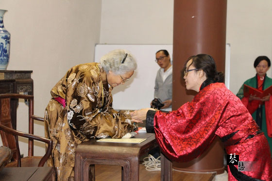 2014年3月15日,在幽静雅致的粤秀书院举行了一场古琴拜师礼,由琴瑟华夏传统礼仪策划的学术顾问蕾蕾老师任司仪及礼仪指导。
