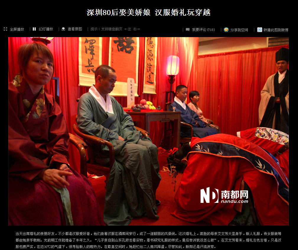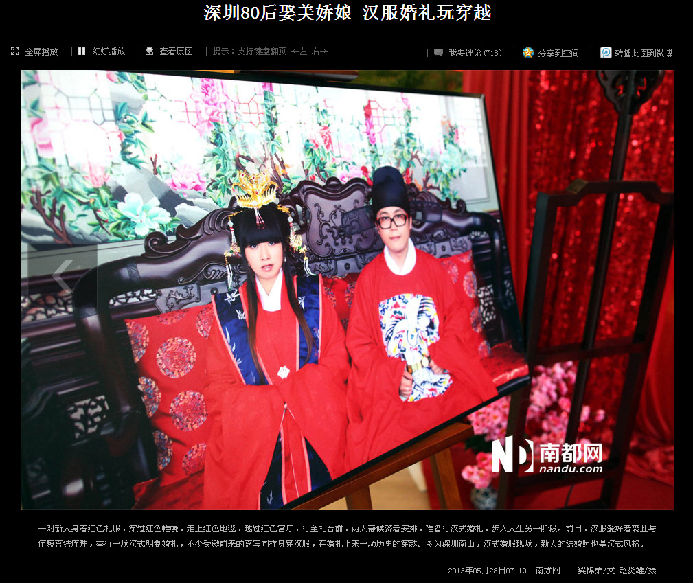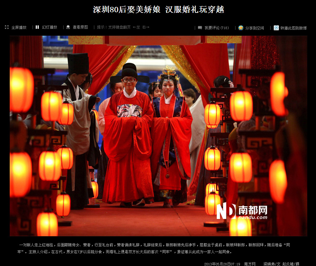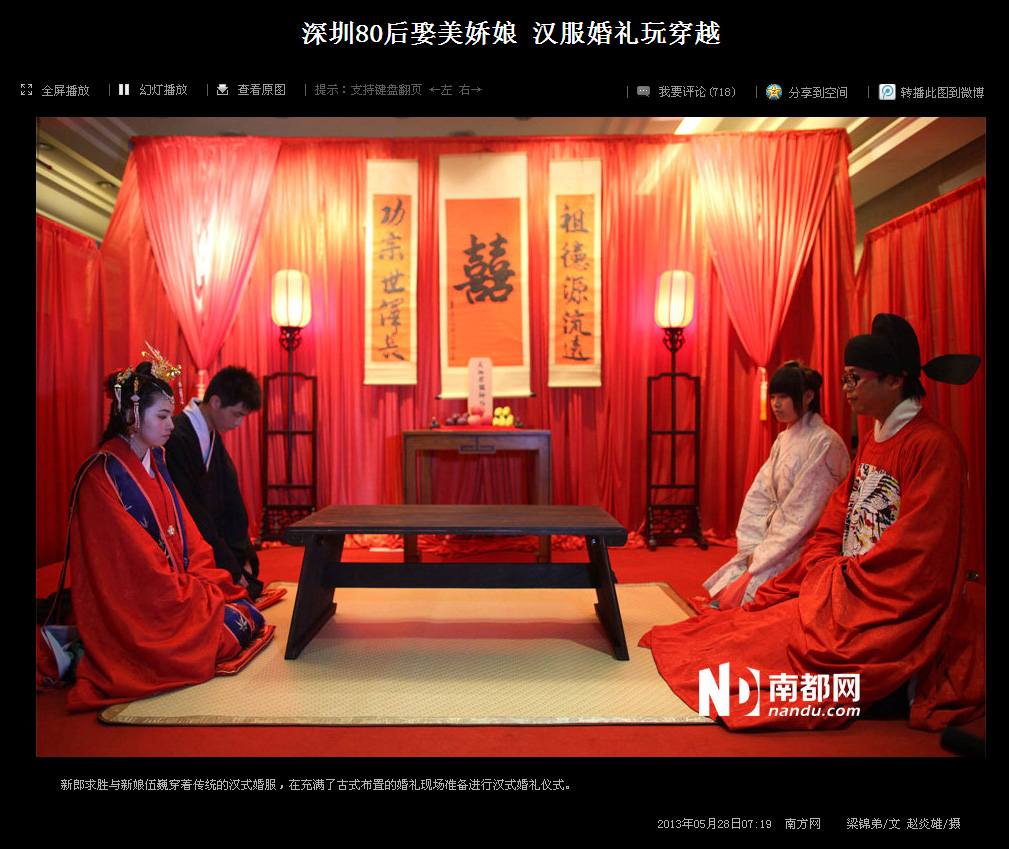 2013年5月26日,琴瑟汉式婚礼为汉服深圳同袍伍巍和求胜举行了端庄的明风婚礼,婚礼受到现场来宾的一致好评,由南都网等多家媒体报道,并登上了腾讯迷你首页的大粤网头条。