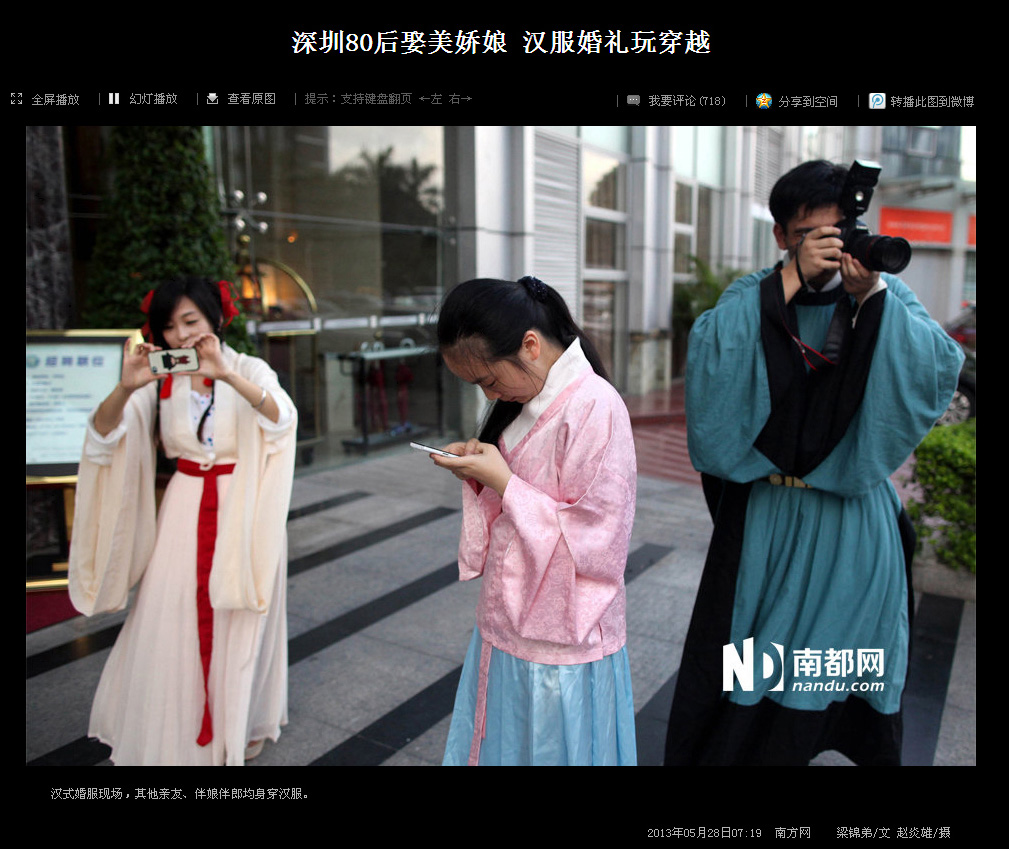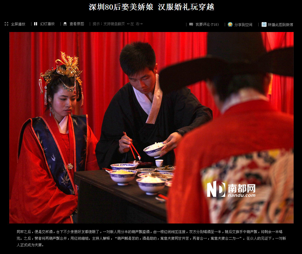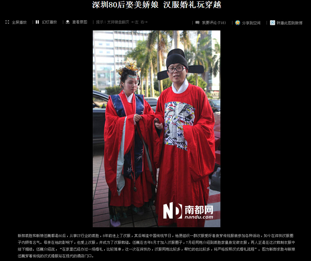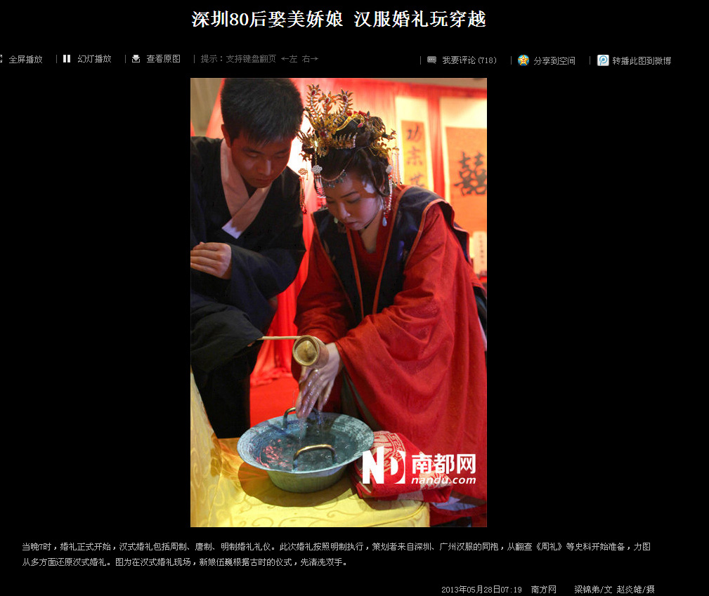 2013年5月26日,琴瑟汉式婚礼为汉服深圳同袍伍巍和求胜举行了端庄的明风婚礼,婚礼受到现场来宾的一致好评,由南都网等多家媒体报道,并登上了腾讯迷你首页的大粤网头条。