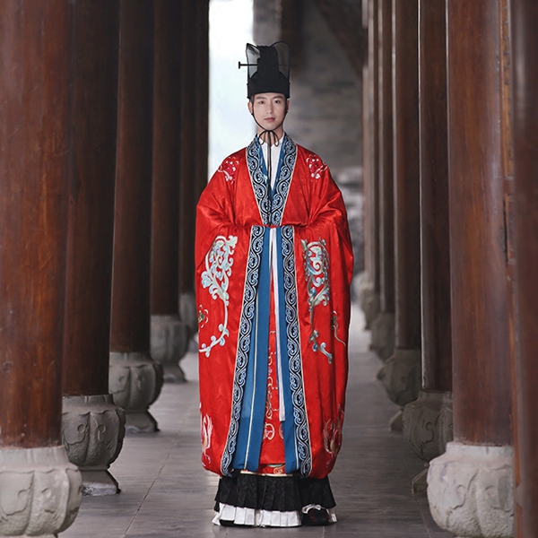 1.大红色外衣(大袖对襟衫,穿成浅交领)