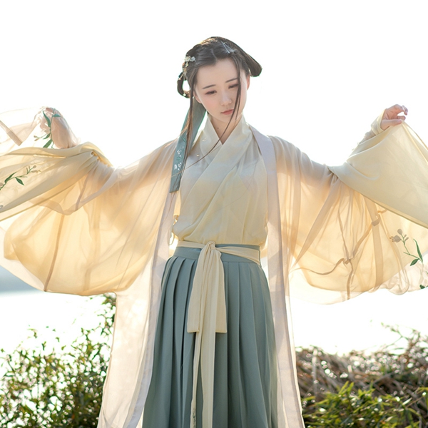 3.浅黄绣花对襟大袖衫