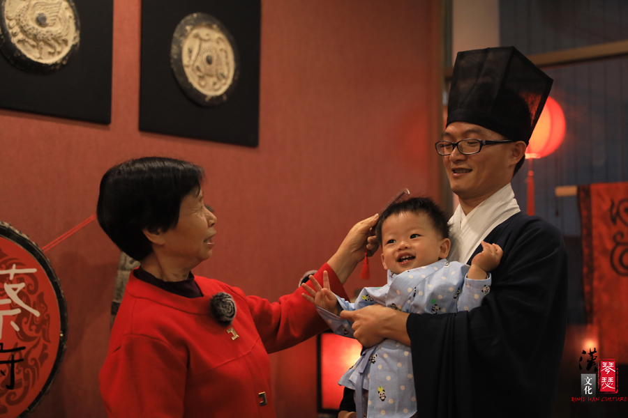 为宝宝换上的是汉民族的传统服装——汉服。这是小迪人生中第一次穿上自己的民族礼服呢,相信他会在中华传统文化的熏陶下成长为一个德行兼备的有用之才。小迪宝宝!加油喔!