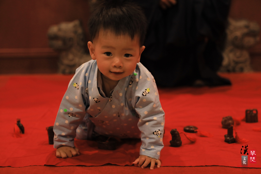 现在就请跟着小编一起来感受这场温馨有趣又有意义的抓周礼吧!