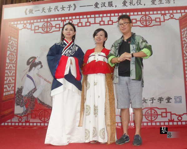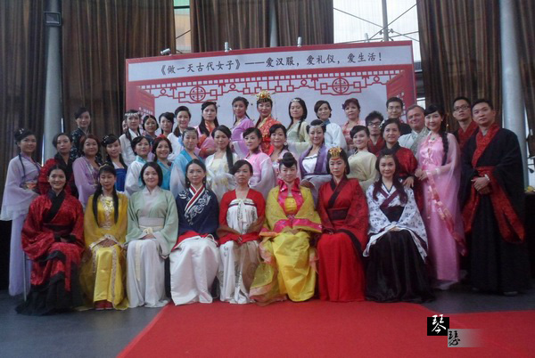 参加活动的学员、老师合影。(由于是先买衣服后参加培训,很多学员还穿着影楼装,但她们纷纷表示了对汉服的兴趣和学习的想法)