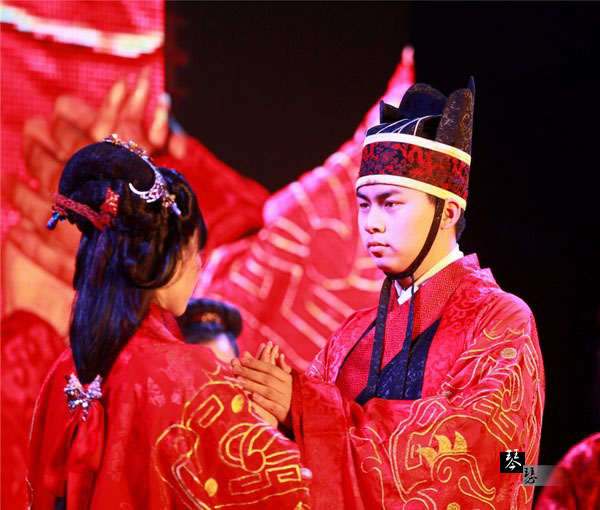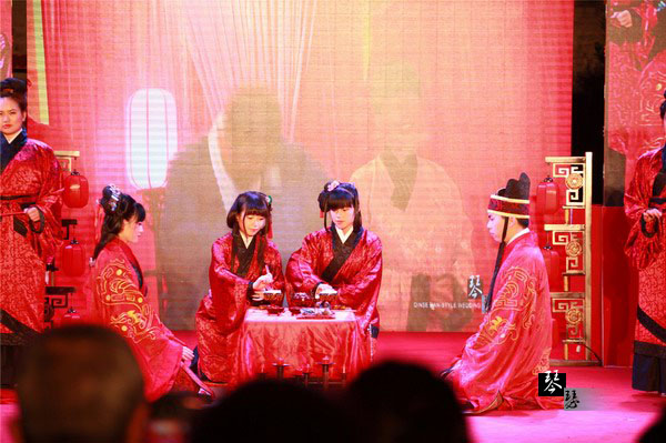 在长达十一分钟的婚礼展示中,汉式婚礼以其严谨却绝不沉闷的程序,深刻却绝不沉重的内涵引发了观众们的高度兴趣。
