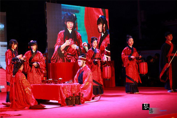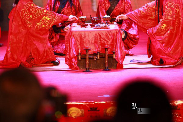 据本次婚礼展示的负责和主持人,来自岭南汉服文化研究会副会长、琴瑟汉式婚礼学术顾问的蕾蕾老师介绍:汉式婚礼是真正的汉民族传统婚礼,其仪式谨承周礼,庄重典雅尊贵,从西周到汉唐宋明已延续几千年。现在受国内的婚礼市场百花齐放,个性十足,却以西式婚纱占据绝对主流,唯独缺少了自己本民族的特色。而市面上的一般中式婚礼,核心流程都近代形成的,以满族传统礼和戏曲情节为主,并非华夏礼仪原貌。近年来,很多汉服同袍开始自己置办华美典雅的汉式婚礼,而象琴瑟这样专注做汉式婚礼,文化和商业相结合的专业婚庆公司也开始进入市场。虽然时间不长,但因其华美的视觉效果、深刻的内涵意义受到年轻人的喜爱。就象今晚这样引起观众轰动的婚礼展示,已经是一年来的第十次,相信假以时日,汉式婚礼会成为传统文化爱好者和时尚新潮人士的共同追求。