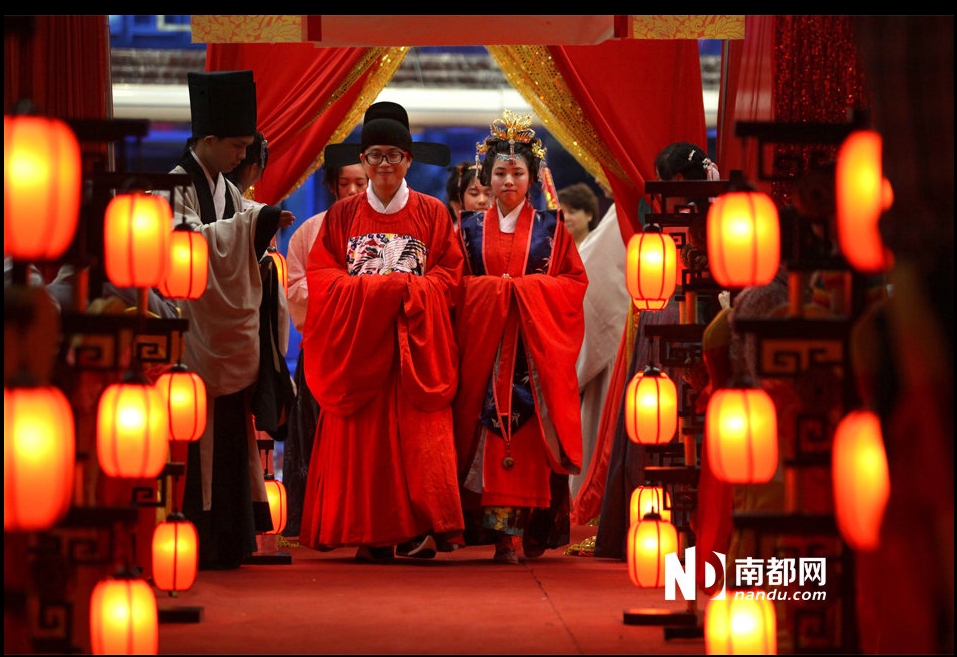 如果你是新人去咨询广州或者深圳等周边城市的婚庆公司,他们都会告诉你他们就会做汉式婚礼。可是当你想看看他们的案例时,他们就会告诉你他们正要开这个业务,保证一定帮你做的很好;要不就是拿出一堆被“同袍”(一群热爱汉服文化,复兴传统文化志愿者的自称)归类为反面教材的“影楼婚礼”或者满清风格的“中式婚礼”。姑且不说这些婚礼做的效果怎么样(笔者认为婚庆公司既然能当做案例给客人看就证明主人家还算满意,但这婚礼做的专不专业,新人恐怕就很难知道了。),但这些婚礼一定是不能被称为“汉式婚礼”或“周制婚礼”了。