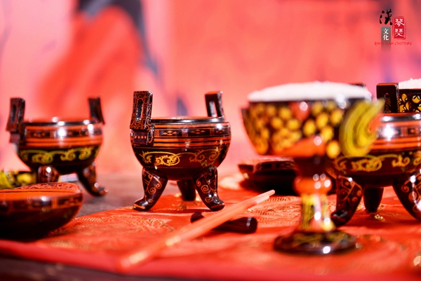 例如仪式要用到案几、席子;亲迎需要用到三书五谷、木雁;沃盥礼需要用到铜洗、布帛;同牢合卺用到盛放肉食米饭的器皿、酒壶、筷子、筷架......