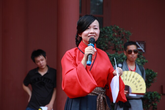 在祭祀大典结束后,岭南汉服还向广大市民展示了各种汉服款式以及汉族传统礼仪,并由蕾蕾老师主持市民汉服试穿及传统知识有奖竞答活动。蕾蕾老师以其出色的演讲和亲切幽默的主持风格成功地吸引了许多市民参与汉服试穿和问答,大大提升了市民对汉服文化的兴趣和热情,并对汉服有了一个新的认识和理解。