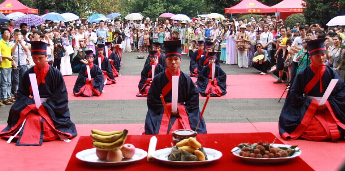201462(农历五月初五)由广州市博物馆与广州岭南汉服文化研究会联手举办的“穿汉服,行古礼”大型端午民俗文化活动在镇海楼圆满结束。本次活动节目种类繁多,端午祭祀则是其中重头戏,而其他民俗体验活动如射五毒、沐兰汤、缝香囊等节目则同步进行。丰富的节目表演及各种趣味互动小游戏吸引了大批游客驻足欣赏和参与。