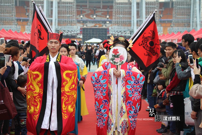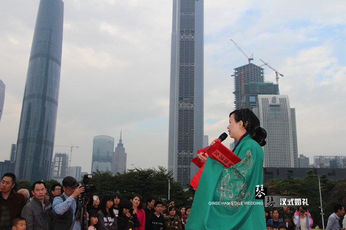 担任本次婚礼展示策划和主持的是来自琴瑟汉婚的蕾蕾老师。蕾蕾老师对记者说:放眼全世界,绝大部分国家的年青人都会穿着民族服装,按传统礼仪举行婚礼。近年来,随着传统文化的复兴,随着民族自信的重新崛起,汉式婚礼正以它的华美和内涵,将成为婚礼上的全新时尚。