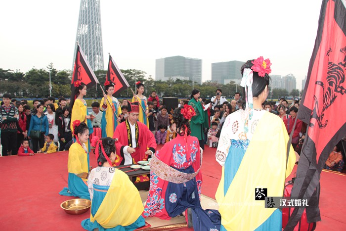 12月6、7日,以十年璀璨,绽放珠江为主题的2014年IEF国际青年嘉年华在海心沙公园举行,广州岭南汉服文化研究会和广州琴瑟汉式婚礼策划受邀参与了此次活动,为广大市民奉上精彩的汉服汉礼及汉式婚礼展示。